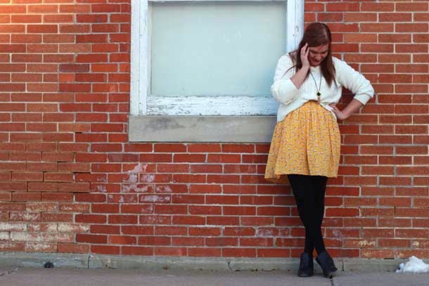 Just seeing this outfit is a pick-me-up :) Love the cheery yellow print of your skirt!